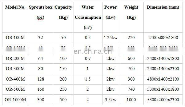 Hydroponic Barley Seeds Sprouting Germinate Machine, adopts full automatic microcomputer control system, it is suitable formost grains and seeds sprouting and growing, like wheat, buckwheat, corn, barely grass, wheat grass, alfalfa grass, oats,sunflowers, mung beans, green leafy vegetable, etc. It can shorten the growth cycle of bean sprouts and greatly avoid thebacterial infections. There is not any chemical additive in the production process, thus can get pure green vegetable. Small, medium-sized and big scale bean sprouts productions are available. Now it has been widely used by households, dining room, supermarket, restaurant, hotel, ship, farms, etc. food and agricultural industry.