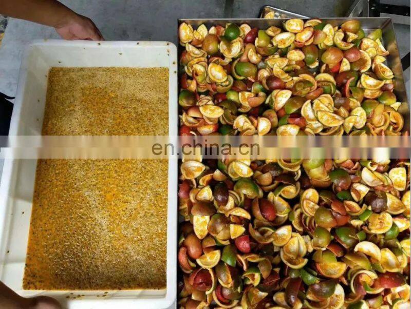 - 1. Passion fruit soaking and then lifting----no damage brush cleaning-----automatic peeling---cut two ends----cut flaps---seeds skin separation without damagingthe seeds(the world's first)