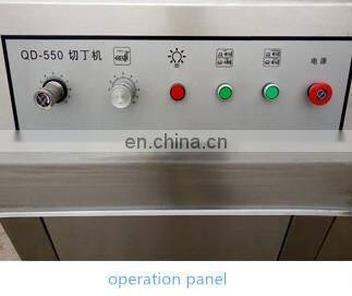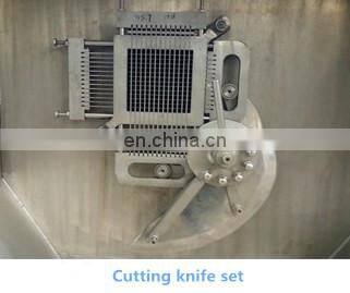 2.By using the centrifugal force of the object, the object will be cut into pieces with the help of a slicing knife (vertical knife), and then the material will be cut into strips through the disc cutting knife, and then the material will be cut into the transverse cutting edge, which will be cut into the required cube or cuboid.