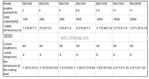 It uses 350 type gear reducer. The mixing motor adopts 7.5KW copper wire.The support uses more upset box iron support. The bearing adopts double containment P12 bearing. The thickness of the helix is 8mm wear-resisting steel plate. All of these designs help to improve the applicability