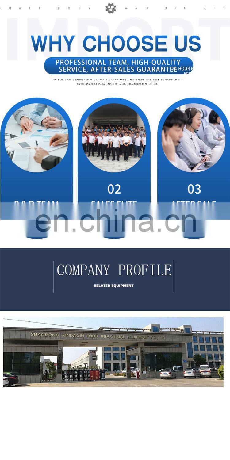 SHANDONG XINDAXIN MACHINERY CO., LTD is a professional global supplier of food industry equipment. Company is focused on R&D manufacturing and sales of food industry equipment including processing line for snacks, frozen French fries, potato chips, meat food , cake baking ,vegetable processing,corn processing and so on. We provide a compete production line to our customers, corn processing. Company’s products have been certified by CE and ISO9000(1)-2000 international quality management system certification, and in accordance with the QS standard food enterprise. After many years of efforts and innovation, “XXD”brand food equipment has been exported to Russia,Canada,Australia, USA, Britain, France and other 80 countries, enjoy a high reputation in the same industry.