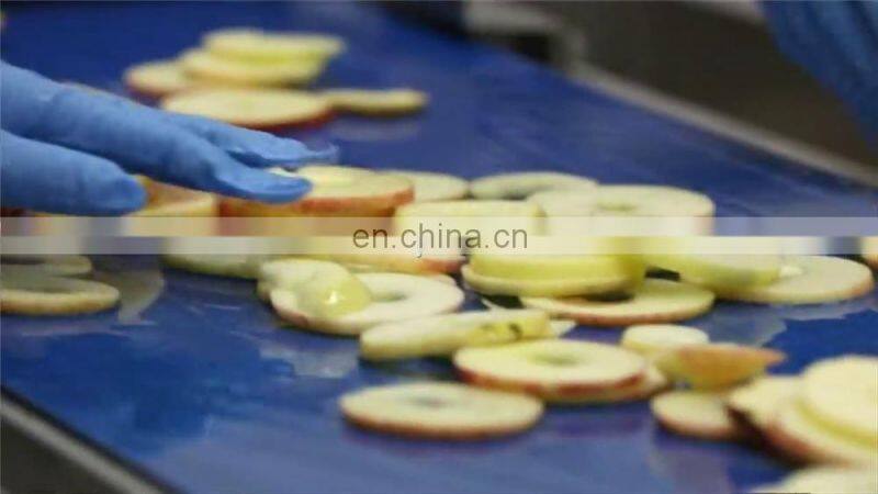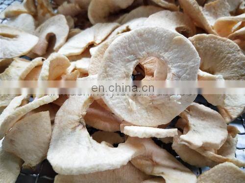After preprocess,dry apples (also same as other vegetables&fruit) through drying machine.After first drying,water content is 15%-20%.Then package it before final puffing drying.