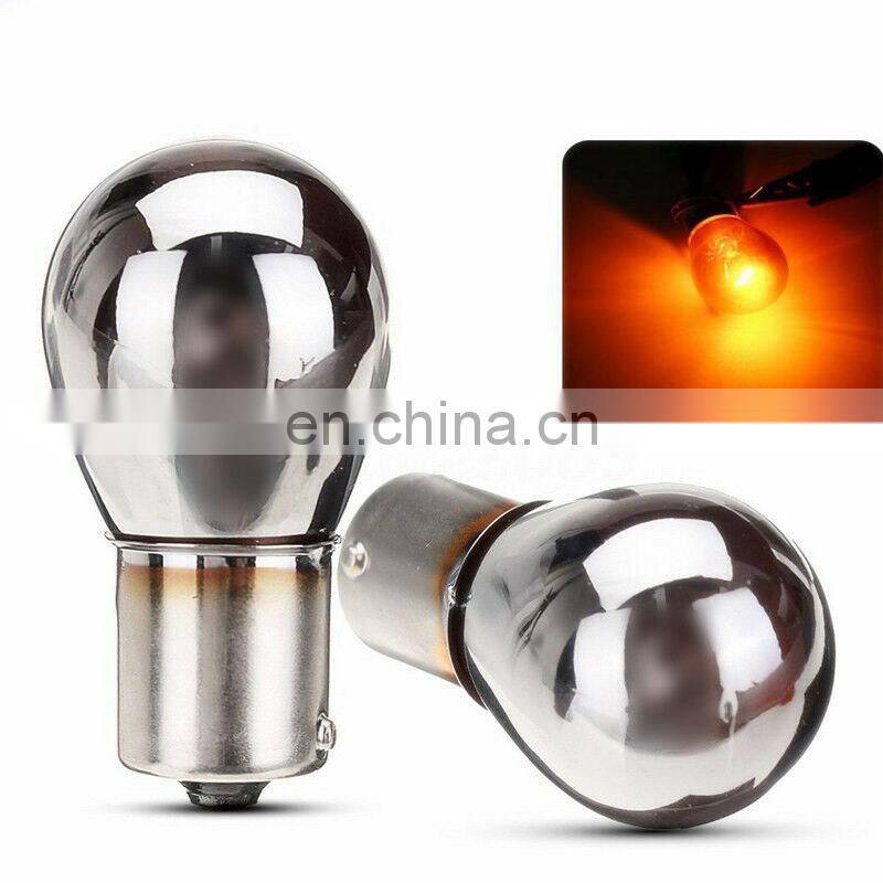 High Quality PY21W S25 BAU15s Silver / Chrome Amber Glass 12V21W Car Tail Lamp Stop Light Indicator Bulb