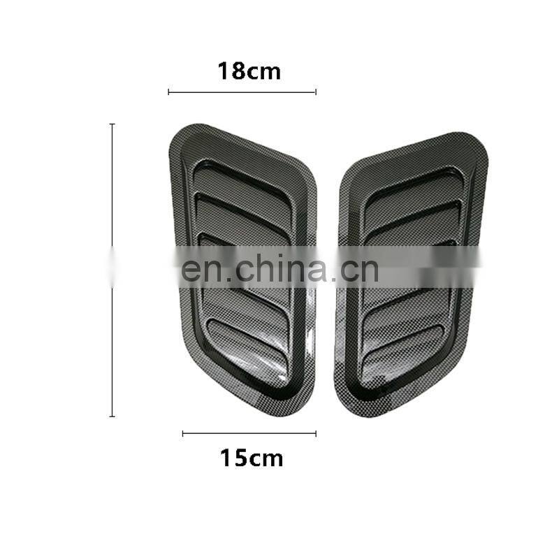 Sticker Placement : Head Item Type: Car hood vent cover sticker Color: Carbon Fiber Material: ABS plastic Size: 33cmx18cm Package included:1 Pair car hood vent cover sticker |