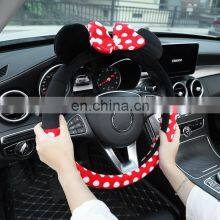 Autoaby Car Steering Wheel Cover Universal Cartoon Mouse Plush Winter Summer Lovely Bowknot Cute Ears Car Interior Accessories