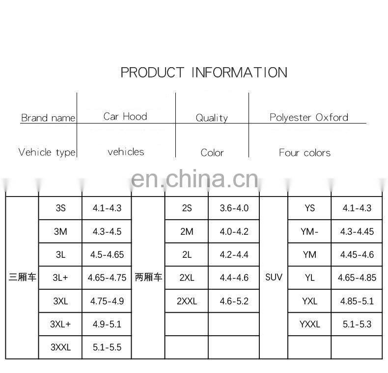 Function: -All weather suitable(Sun Rain Snow Frost Resistant); -Summer: Reflective rate over 80%, strong UV proof; -Winter: snow, frost protection; -90% Waterproof(Water pressure is within 800MM); -Prevent bird droppings, leaves and dust damaging the car paint. Feature: -PA coating, can anti UV -Warning reflective strip,can alert past vehicles; -2 windproof belt and buckle for car four wheels, prevent the wind blowing away; -Opening door zipper, convenient to take something; -Storage bag, avoid taking up space; -Easy installation, one person can complete the installation and storage. |