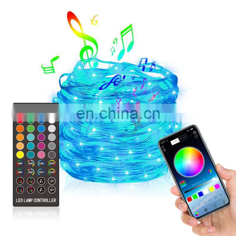 Drop Shipping RGB Smart Bluetooth APP Remote Control Copper Wire Christmas Tree Decoration Led Fairy String Light