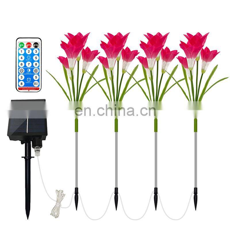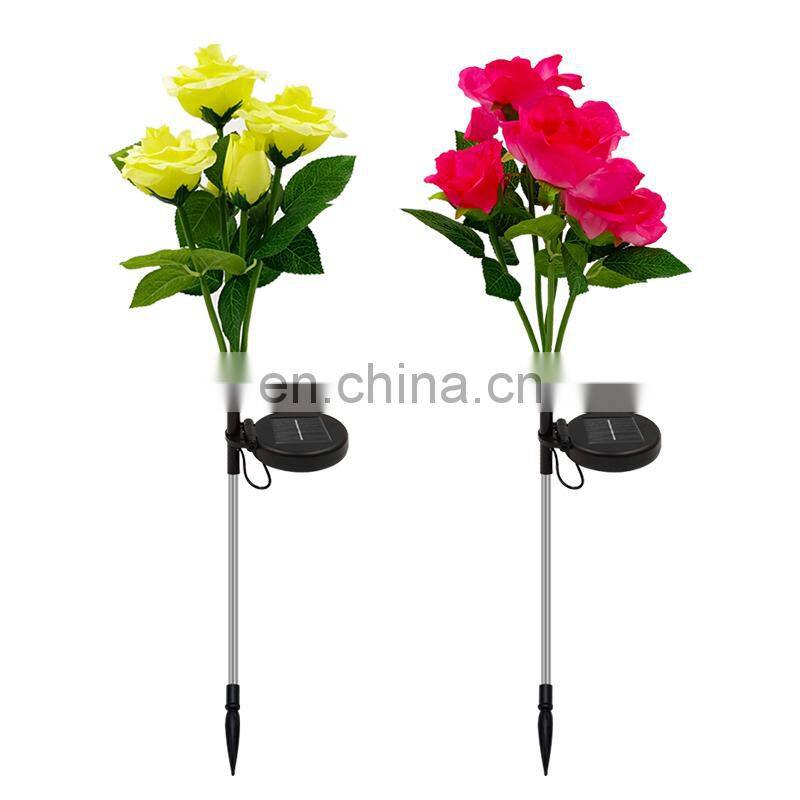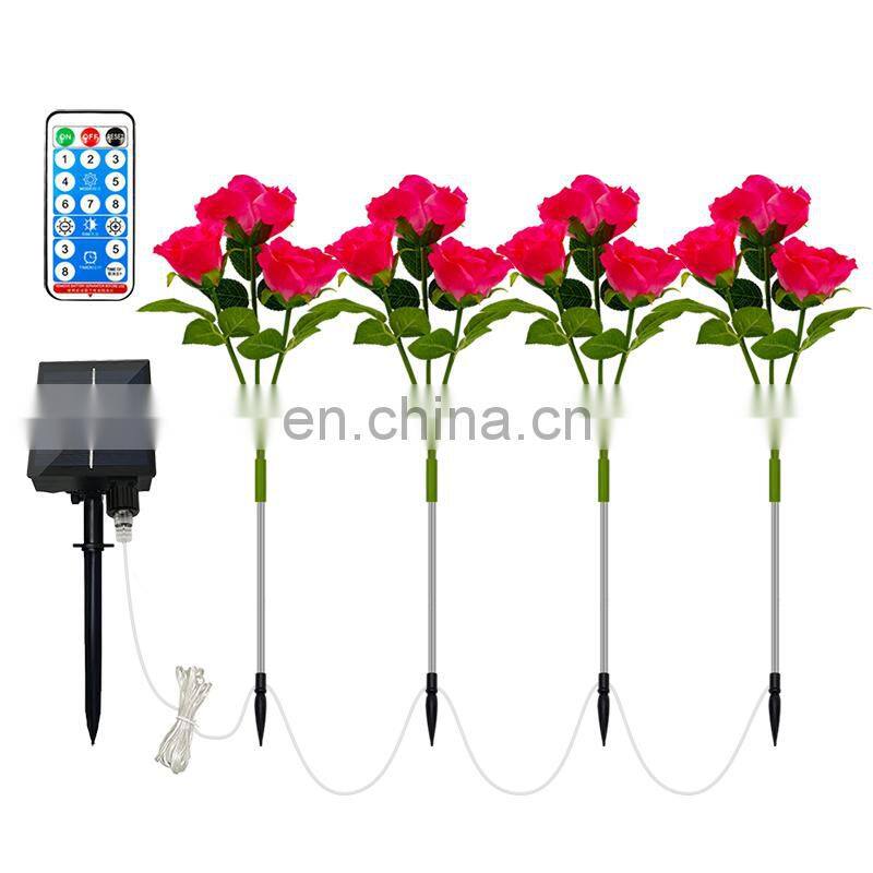 2021 Amazon New Style 4LED Hot Sales Solar Rose Flower Light Remote Control Multicolor Lighting Flower Lamp