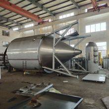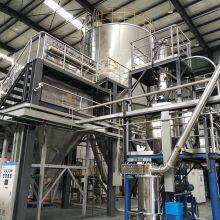 The air passes through the filter and heater, and enters the air distributor at the top of the dryer, and the hot air enters the dryer evenly in a spiral shape. The feed liquid is pumped from the feed liquid tank through the filter to the centrifugal atomizer of the dryer, so that the feed liquid is sprayed into extremely small mist droplets. It can be dried to powdery product within time. The finished product is discharged from the bottom of the drying tower and the cyclone separator, and the waste gas is discharged by the fan.