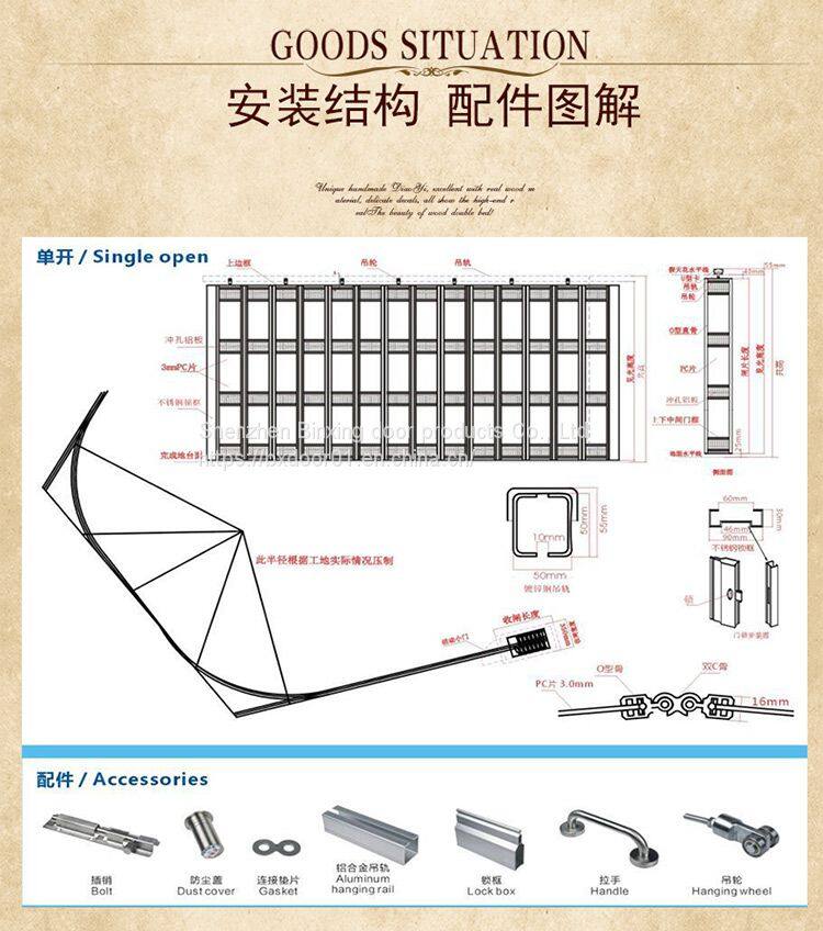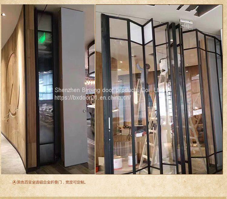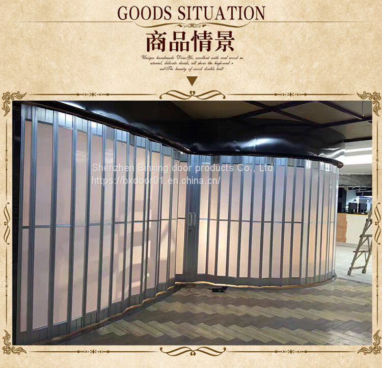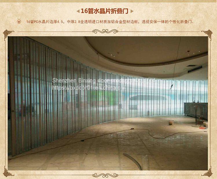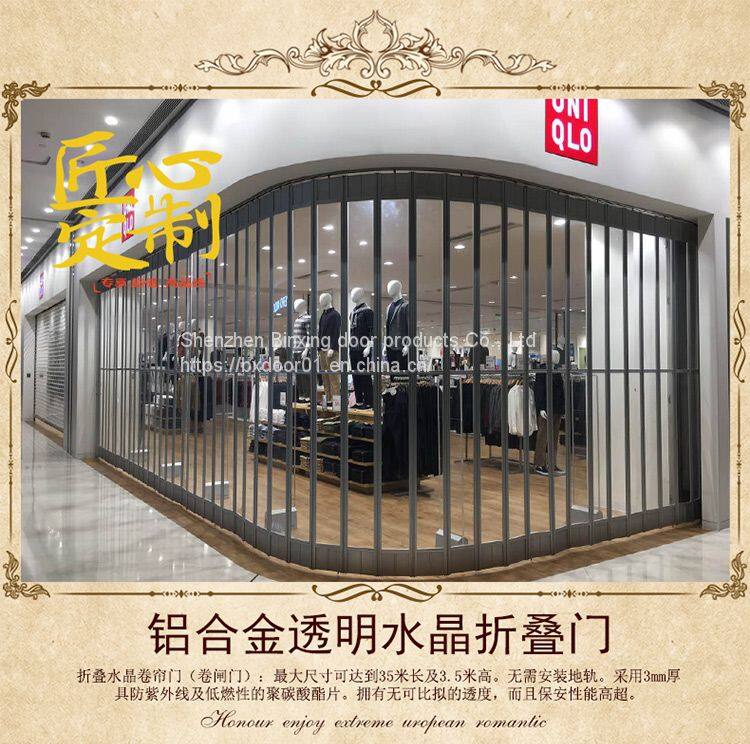 Home > Products > folding door > Aluminium Accordion Folding Door The Latest Door Grille Design of Large Shopping Malls PC Crystal Folding Door