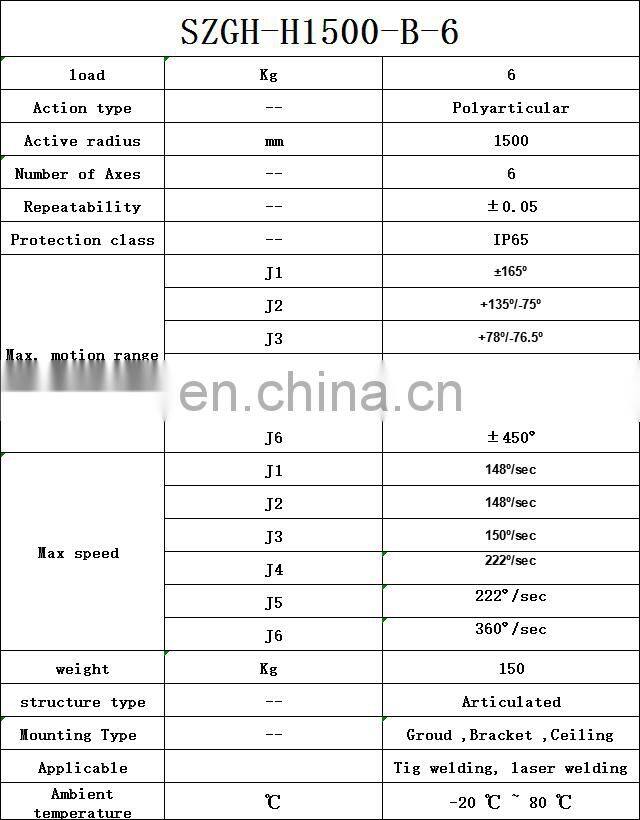 SZGH-H1500-B-6 robot is dedicated to welding. It is a robot