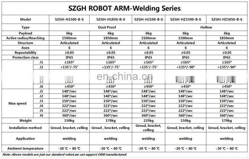 SZGH-H2100-B-6 robot is our welding robot arm ; easy operation, high efficiency and safety Main Application :Automobile, metal doors &windows, engineering machinery, mining machinery, locomotives, electrical appliances,