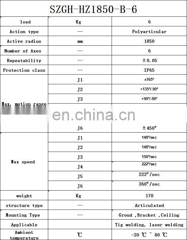 SZGH-HZ1850-B-6 robot is dedicated to welding. It is a robot