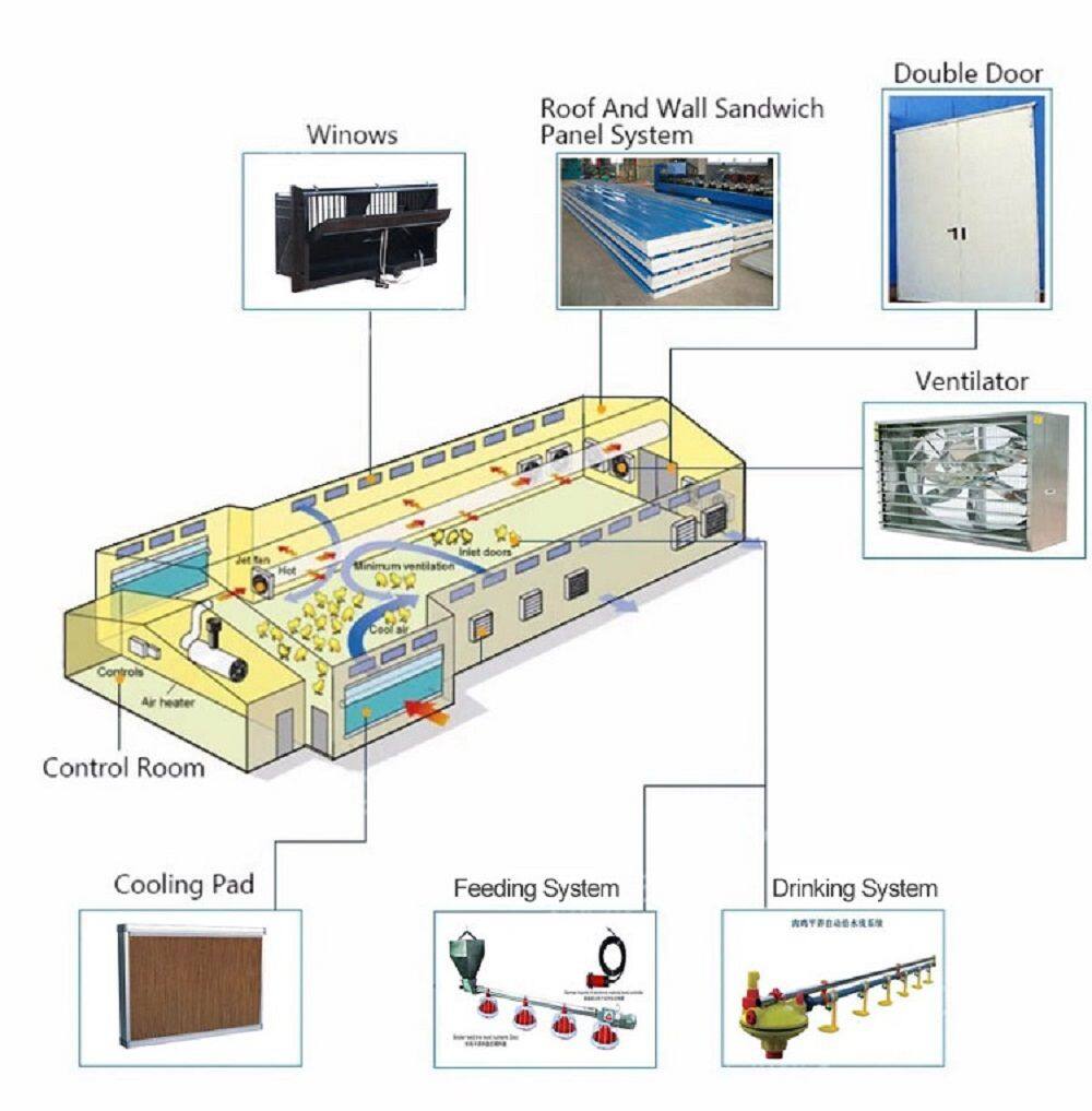 Generally configuration for a chicken house farm: