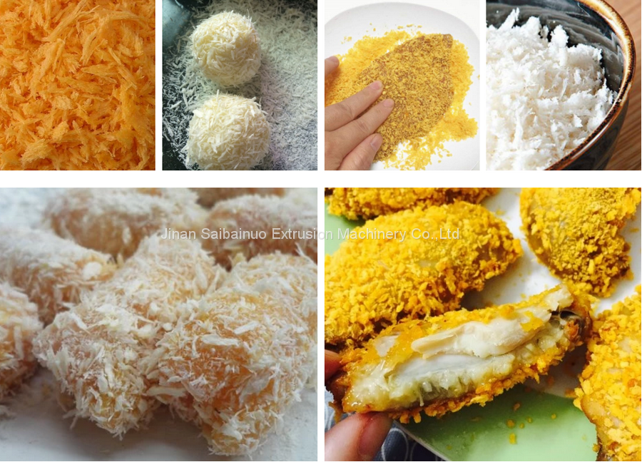 Bread crumbs making machine is researched and developed on the basis of advanced international technology. It changes the traditional craft making bread crumbs. Fully automatic, easy operation, less number of workers, high efficiency, low-energy use, non-waste are the main characteristics of this line. The main products are aciculate crumbs, granular crumbs etc. Bread crumbs are widely used as food coating additives on the surface of fried foods, like: fried chicken, burger patty, sea foods, onion rings etc, so that the food obtain a very crispy, savory texture and attractive colorful presentation.