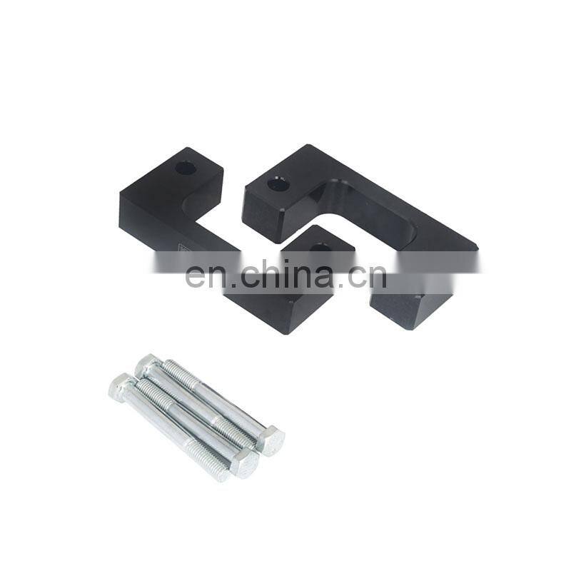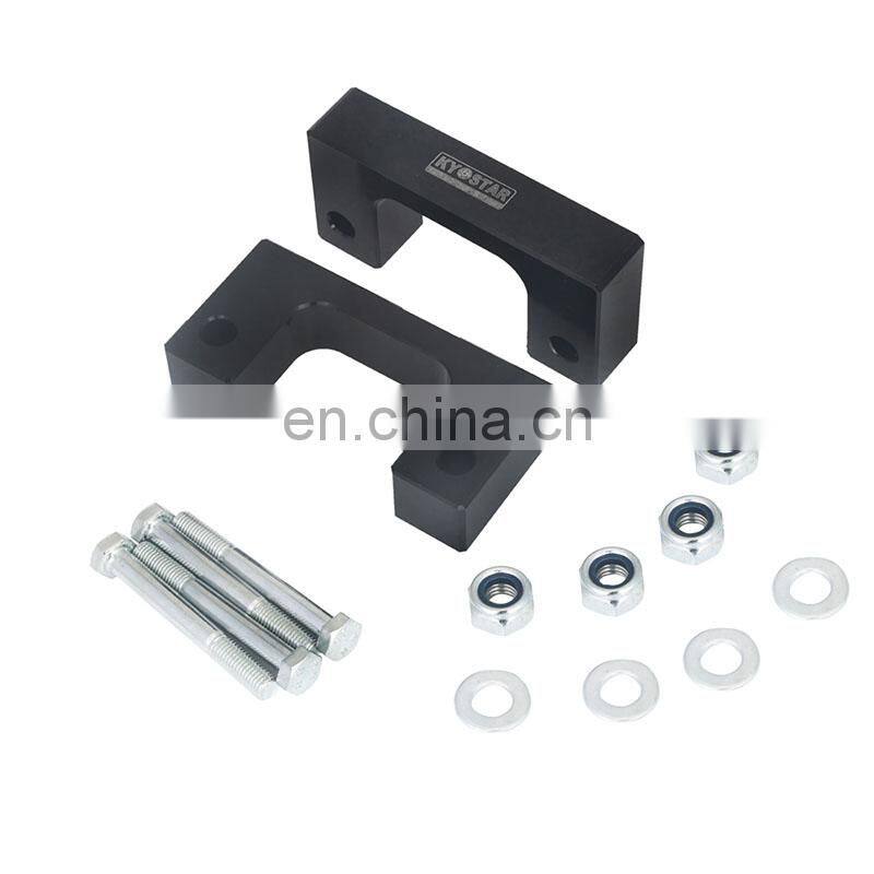 This lift kit will raise the front of your Silverado or Sierra by a true 2". Can be installed in about 1 1/2-2 hours and does not require strut/coil disassembly like other kits. They are CNC machined out of billet aluminum and then anodized black to match you factory suspension. The quality of this kit cannot even be compared to cheap imported spacers.