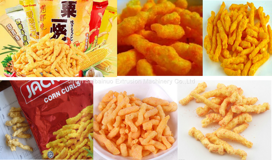 The Corn curls cheetos Niknaks making machine is a set of specialized equipments for producing Cheetos snacks which uses about 20 mesh corn kernels as raw material. Single screw extruder extrudes irregular Cheetos kurkure, then by baking(or frying),flavoring to make crispy Cheetos snacks food which is popular in the world.