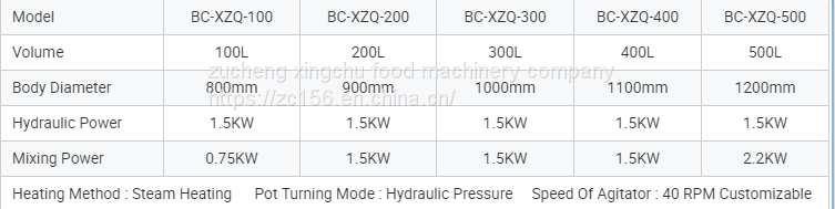 | Model Number | 100L -1000L | Type | Cooking Equipment | |