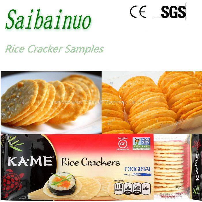 Rice cracker making machine has high degree of automation, saving energy. It takes the rice, millet, black rice, buckwheat and all kinds of grains as raw material and makes the vitamin, protein and mineral composition mixed, extruded, then baked to make different shapes and tastes breakfast rice crackers,which is popular in Thailand,Austrialia,USA,Europe etc,we also called it ,Rice bites,Rice Chips,Rice Crunch etc.