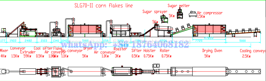 Model | SLG60 corn flakes making machine | SLG70 corn flakes making machine | SLG85 corn flakes making machine |