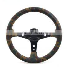 AOSU Universal Racing Depth 92mm Diameter 350mm Suede Camouflage Steering Wheel