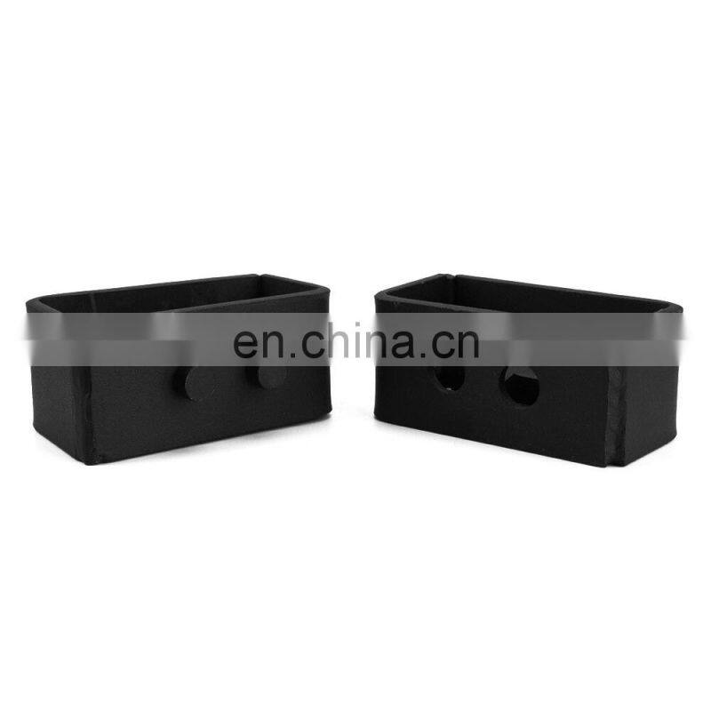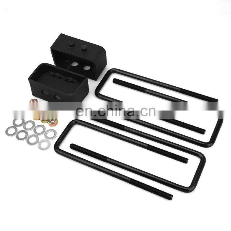 For the rear the kit comes with new fabricated rear lift blocks and longer U bolts. Fabricated lift blocks will out last cast iron and will far outlast solid aluminum rear lift blocks. The rear lift blocks are also powdercoated for a long lasting finish.