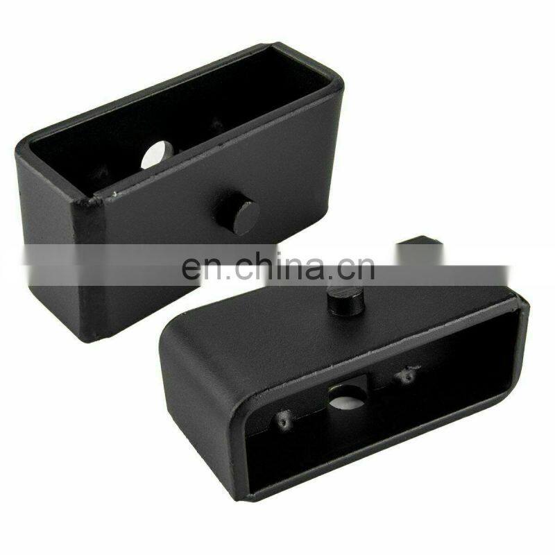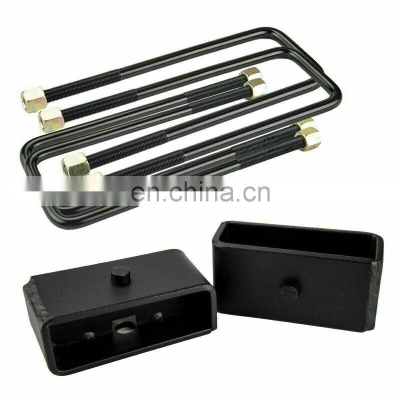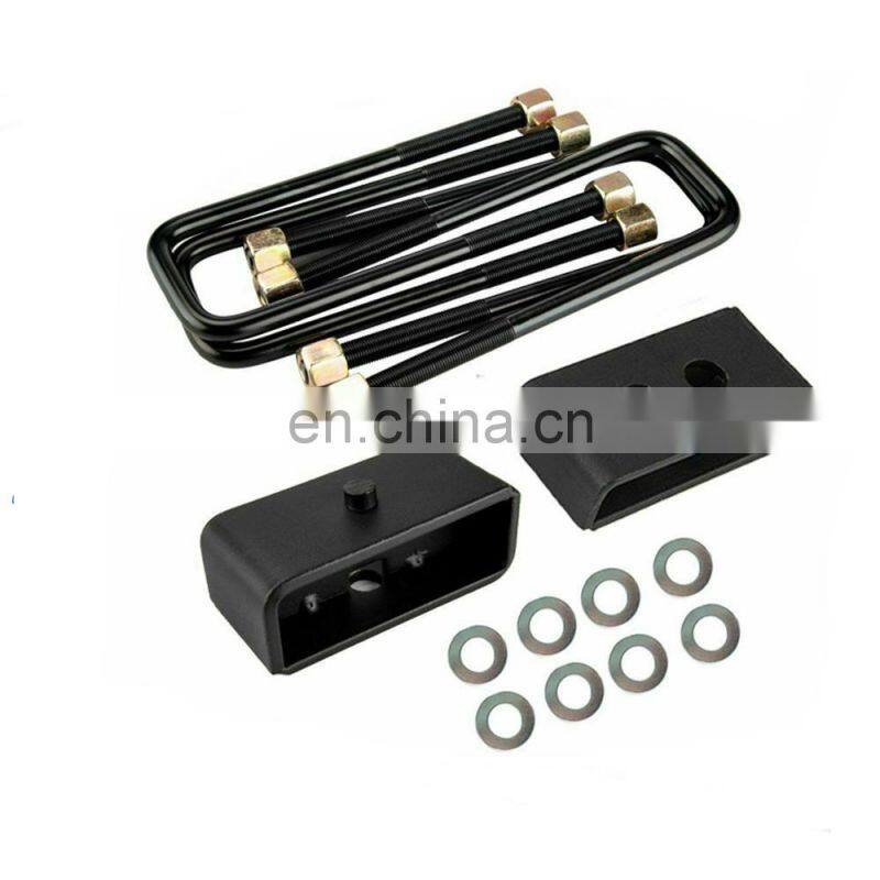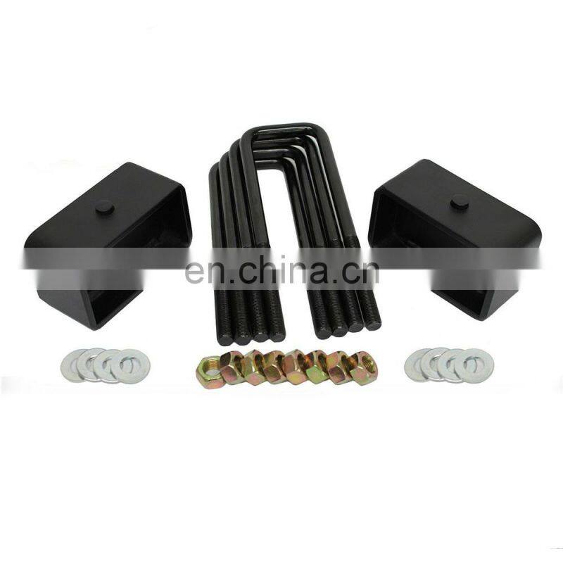 This rear kit comes with new fabricated rear lift blocks and longer U bolts. Fabricated lift blocks will out last cast iron and will far outlast solid aluminum rear lift blocks. The rear lift blocks are also powdercoated for a long lasting finish.