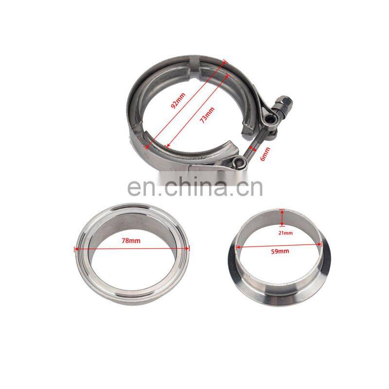 The V-shaped belt clamp + flange makes it easy to install and remove the exhaust system and turbine parts (such as downpipes, B pipes, etc.). These fixtures are perfect for racers and tuners, because there is no need for laborious bolts or special tools to reach, so important parts can be easily accessed by easily disassembling parts. The components can be easily removed by simply loosening the clamp
