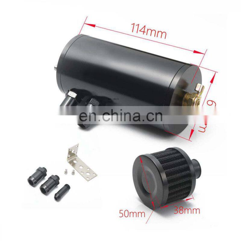 AUSO Universal Aluminum Auto Parts Car Modified Round Oil Breathable Pot Waste Gas Oil Recovery Pot Catch Can With Drain Valve