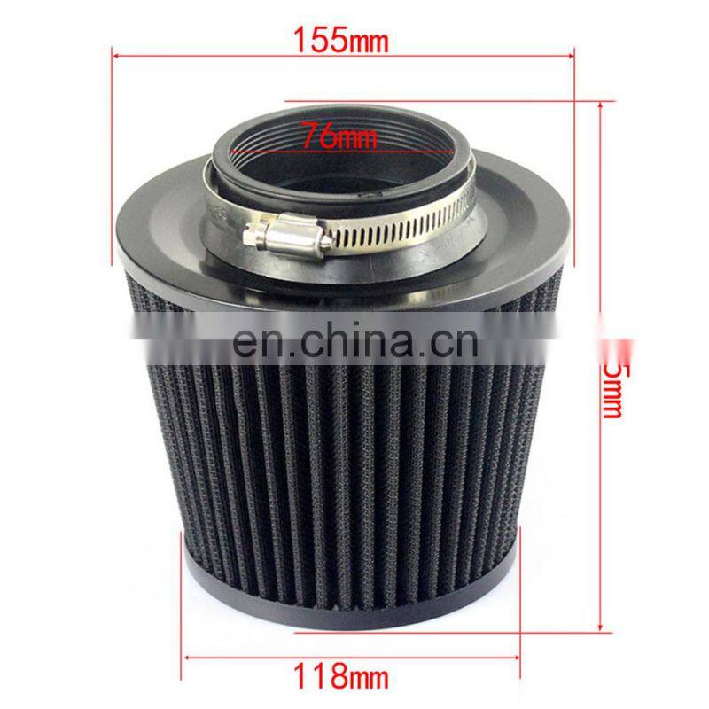 AUSO Universal Auto Parts Performance High Flow 76MM Cone Air Filter Hepa For Universal Car