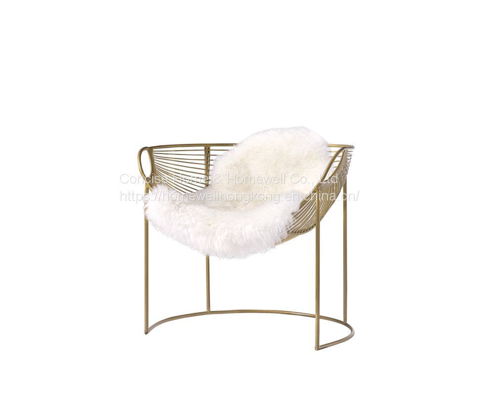 Concise Luxury leisure chair LC-2805 solid metal chair, solid metal wire frame with optional fur cover.