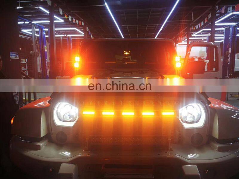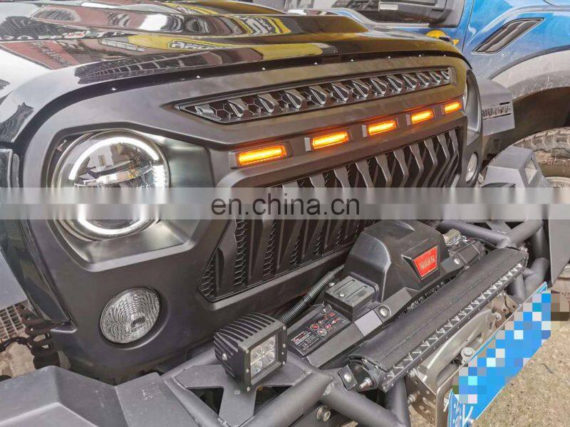 Grill for Jeep Wrangler JK Accessories 2007-2018 Matte Black Angry Face Grill With 5 Amber Lights for Jeep Rubicon Sahara Sport