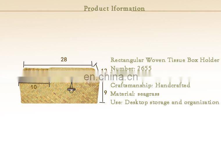100% Eco-friendly Sea Grass Square Rectangle Napkin Holder Woven Tissue Box