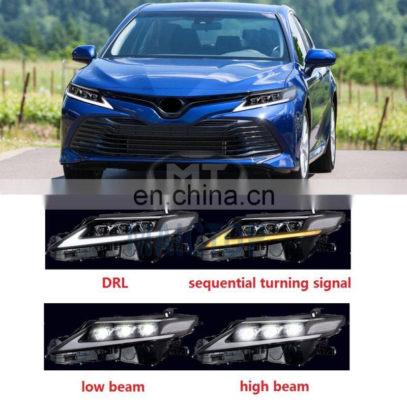 Maictop New Lexu Style Three Eye Headlights H4 H7 Car LED Refit Headlight for Camry 2018 Front Light
