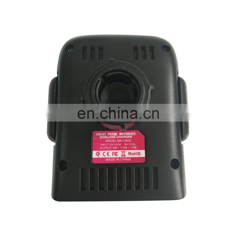J326 wireless car charger, automatic clip phone, Product parameters: Product size: 93*105*53cm Surface technology: PC+ABS Color: gun black Packing size: 14.1*14.1*11cm Gross weight: 0.35KG Hardware parameters: Input: 5V/2A (automatic identification of QC2.0 and QC3.0) Charging power: 10W (Max) Efficiency: 80% Interface: Latest Tyre-C USB interface Coil size: 60MM Temperature: -20°~ 50° Standard: Wireless Charging Alliance WPC QI Certification Overvoltage protection: support Support iPhone 7.5W high-speed wireless charging and 10W high-speed wireless charging for Android devices |