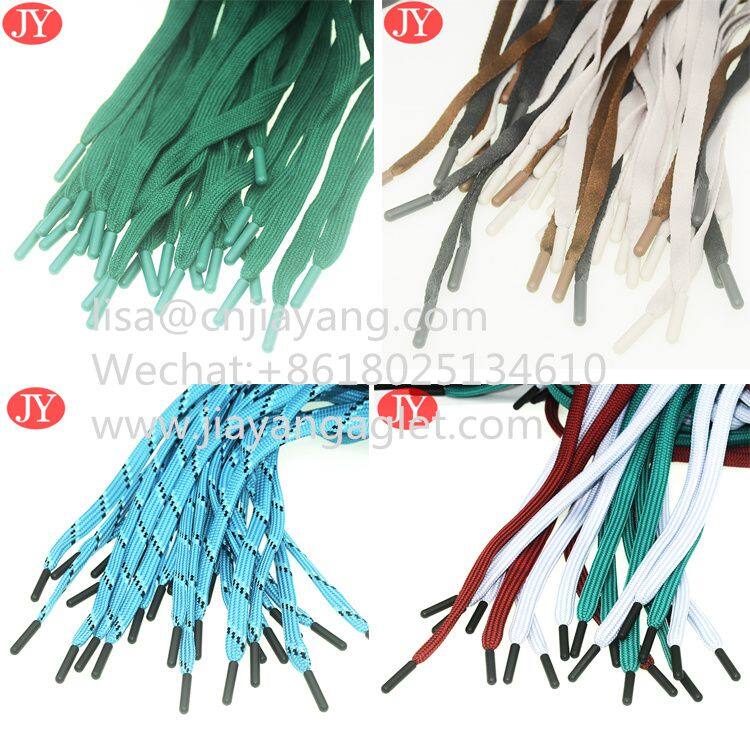 Home > Products > drawcord /shoelace > Factory Custom Flat Polyester With Black Aglet Tips Eco-friendly Shoe Lace Aglet 10mm Drawstring Lace Aglet