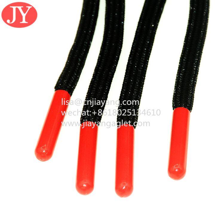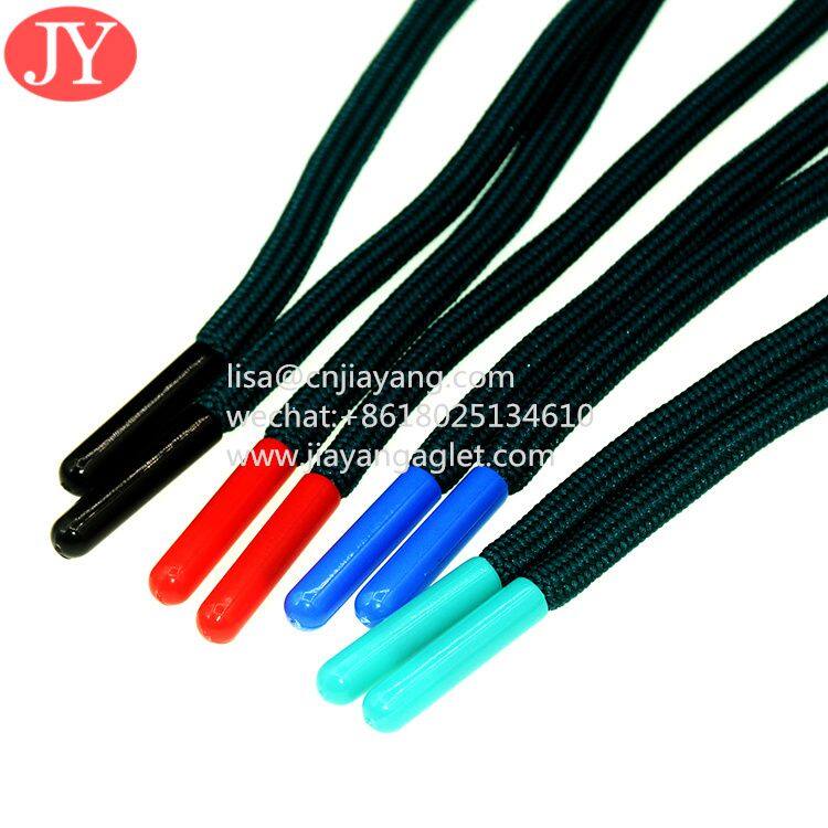 Product name:black/red/blue color plastic shoe lace aglet with round polyester string end bullet cord