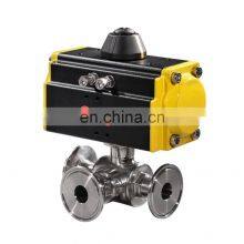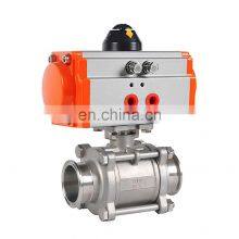 3 Piece Stainless Steel Tri Clamp Connection Double Acting Pneumatic Actuator Ball Valve