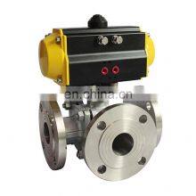 COVNA DN150 6 Inch 3 Way Double Flanged Stainless Steel Ball Valve With Pneumatic Actuator Air Control Flange Ball Valve