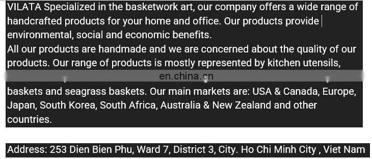 All our products are handmade and we are concerned about the quality of our products. Our range of products is mostly represented by kitchen utensils, home decor products, furniture items, storage bins and baskets, laundry baskets and seagrass baskets. Our main markets are the USA & Canada, Europe, Japan, South Korea, South Africa, Australia & New Zealand and other countries.