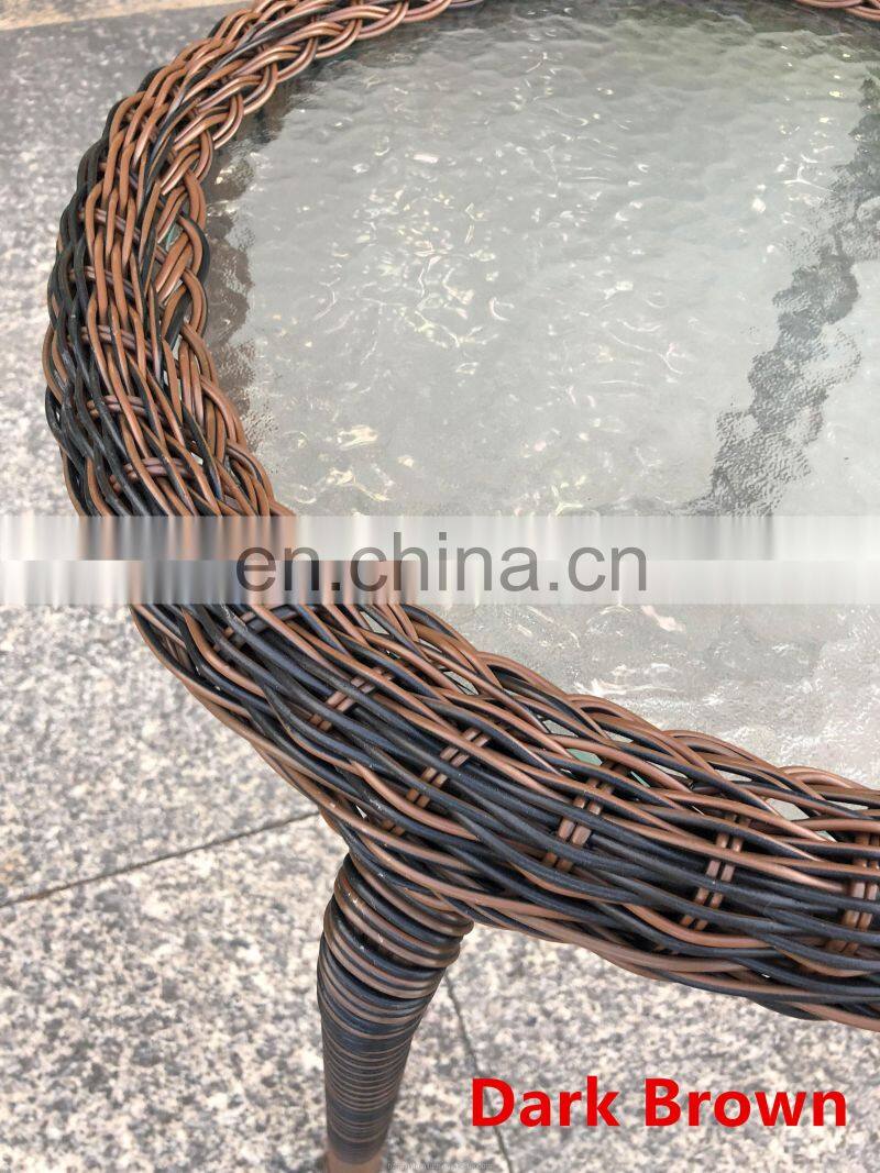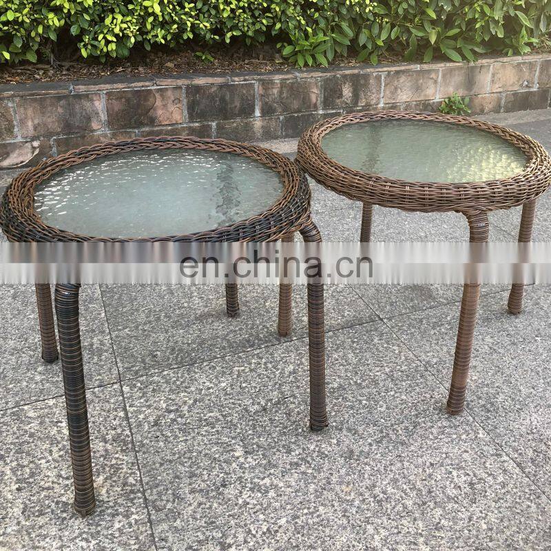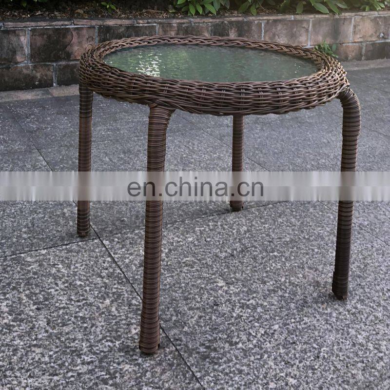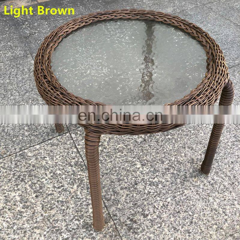 Indoor & Outdoor PE Rattan Round Side Table End Table With Glass Top, Brown Patio Garden Furniture for Sale