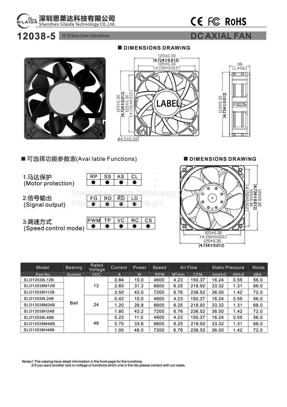 12038 12V 4-Pin PQM Temperature Control Cooling Fan 12cm Max Airflow Rate Fan