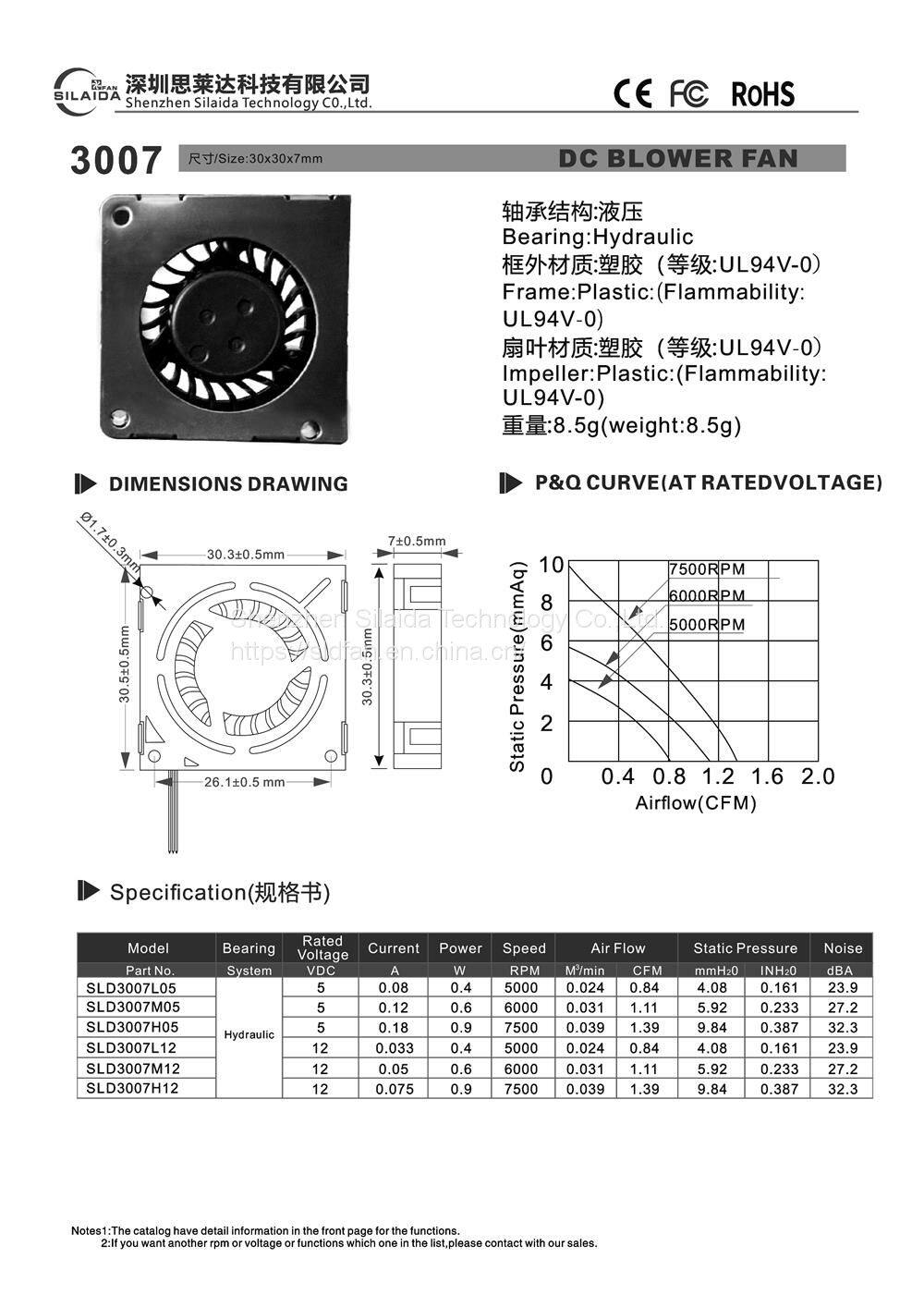 Hydraulic Bearing 3007 Blower Turbine DC Fan 5V 12V 30x30x7mm Mini Motor Cooler Fan