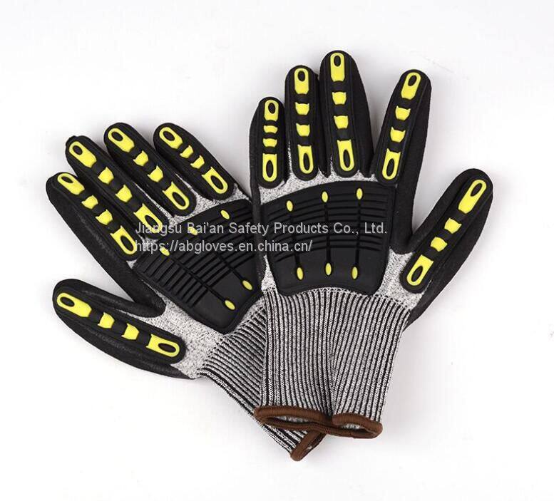 Cut Resistant Level 5 Protection Sandy Nitrile Palm Coated TPR Mechanic Impact GlovesNegotiableMOQ: 100 Pairs