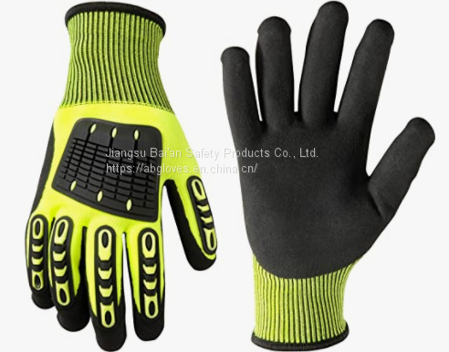 BA Gloves Oil and Gas Resistant Anti Impact & Cut 13G Hi-vis HPPE Liner Nitrile Sandy Coated TPR High Impact Anti Impact Gloves Impact Resistant Gloves