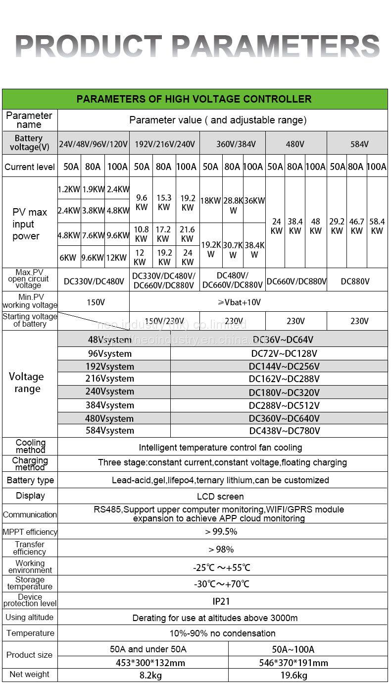 24V/48V/96V/120V/192V/216V/240V/360V/384V/480V/584VHigh Voltage Mppt Solar Charge Controller