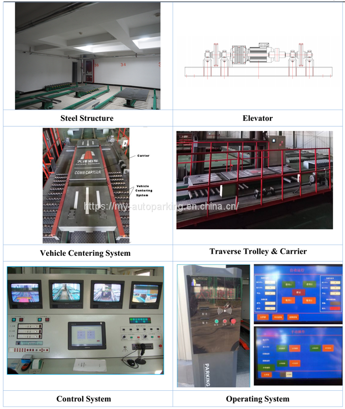 The equipment consists of seven major components, including Steel Structure, Elevator, Traverse Trolley & Carrier, Vehicle Centering System, Control System, Electrical System and Operating system.