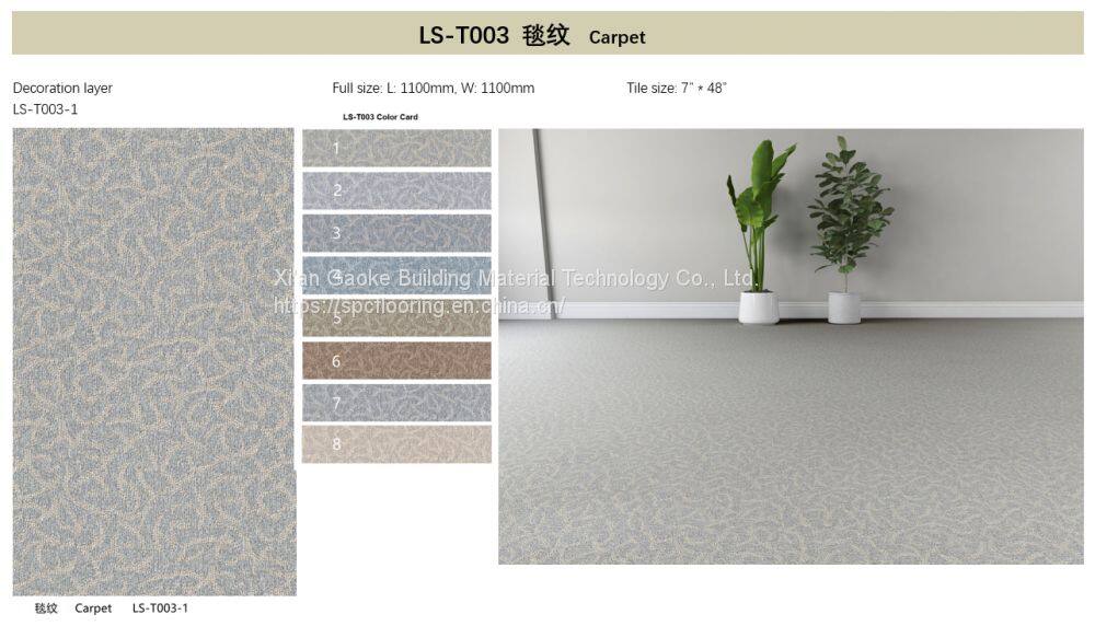 GKBM LS-T003-1 Eco-friendly Unilin Click Brown with Blue Fresh Cool Carpet Grain SPC Flooring