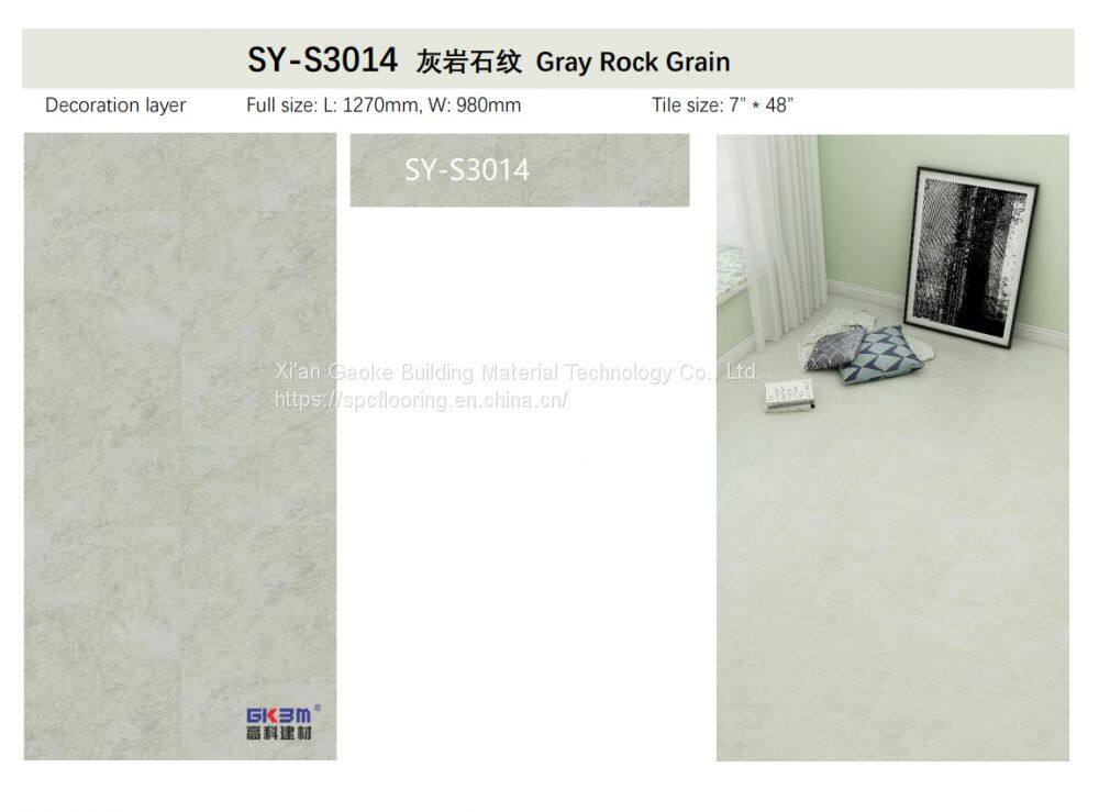GKBM Greenpy SY-S3014 4mm Eco-Friendly Waterproof Click Gray Rock Stone Plastic Composite SPC Flooring for Office