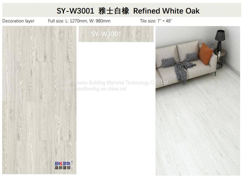 GKBM Greenpy SY-W3001 New Eco-Friendly Waterproof Fireproof Refined White Oak 4mm Click Stone Plastic Composite SPC Flooring